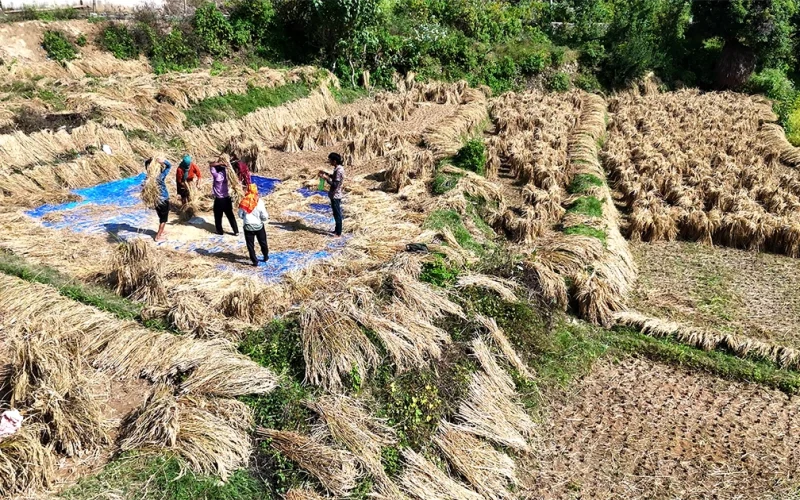 रामेछाप- यही कार्तिक १२ गतेदेखि १५ गतेसम्म परेको बेमौसमी वर्षाले किसानहरूलाई ठूलो मार परेको छ । लगातारको वर्षाका कारण खेतमा काटेर सुकाउन राखिएको धान पानीमा डुबान हुँदा किसानको वर्षभरिको मेहनत खेर गएको छ । पानीमा डुबेका धानको दाना बोटमै टुसाएका छन् । बोटमै टुसाएको दानाको चामल भातको लागि प्रयोग नहुने किसानहरुको भनाइ छ । यद्यपि किसानहरु अहिले त्यही पानीमा डुबेको धान भित्र्याउन जुटेका छन् । पानीमा डुबेर टुसाएको धान गाईवस्तुलाई खोले खुवाउनकै लागि भएपनि भित्र्याउनु परेको मन्थली नगरपालिका–७ भटौलीका किसान देवकी भुजेलले बताइन् । उनले भनिन् “धान बोटमै टुसाएको छ, टुसाएको धानको चामल टुक्रिएर कनिका हुन्छ, भात खान त मिल्दैन तर गाईवस्तुलाई खोले खुवाउन काम लाग्छ ।”