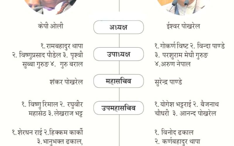 केपी शर्मा ओली प्यानल ओली प्यानलबाट उपाध्यक्षमा रामबहादुर थापा, विष्णु प्रसाद पौडेल, पृथ्वी सुब्बा गुरुङ र गुरु बराल रहेका छन्। महासचिवमा शंकर पोखरेल उम्मेदवार छन्। उपमहासचिवमा विष्णु रिमाल, खड्गवीर महतरा र लेखराज भट्ट छन्। सचिव पदका लागि शेरधन राई, हिक्मत काकी, भानुभक्त ढकाल, डा. राजन भट्टराई, खगराज अधिकारी, पद्माकुमारी अर्याल, यमलाल कँडेल, छविलाल विश्वकर्मा र महेश बस्नेतको उम्मेदवारी रहेको छ।