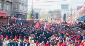 काठमाडौँको भृकुटीमण्डपमा आज आयोजना गरिएको एकता सन्देश सभाका लागि सुन्धारा, शान्तिबाटिका लगायत विभिन्न स्थानबाट र्याली सुरु भएको हो ।