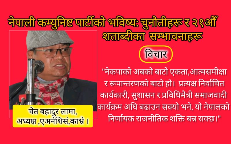 नेकपाको अबको बाटो एकता,आत्मसमीक्षा र रूपान्तरणको बाटो हो। जेन-जी आन्दोलनले देखाएको चेतनालाई गम्भीरतापूर्वक बुझ्दै यदि पार्टीले प्रत्यक्ष निर्वाचित कार्यकारी, सुशासन र प्रविधिमैत्री समाजवादी कार्यक्रम अघि बढाउन सक्यो भने, यो नेपालको निर्णायक राजनीतिक शक्ति बन्न सक्छ। अन्यथा, विगतका दलहरूकै भीडमा सीमित हुने खतरा रहन्छ। तसर्थ, चुनौती पार गर्दै सम्भावनाको सदुपयोग गर्नु नै नेकपाको भविष्यको कसी हो।