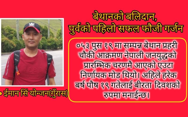 ०५३ पुस १९ मा सम्पन्न बेथान प्रहरी चौकी आक्रमण नेपाली जनयुद्धको प्रारम्भिक चरणमै आएको एउटा निर्णायक मोड थियो। अहिले हरेक बर्ष पाैष १९ गतेलाई बीरता दिवशकाे रुपमा मनाईन्छ।