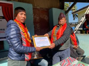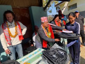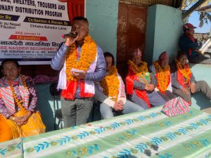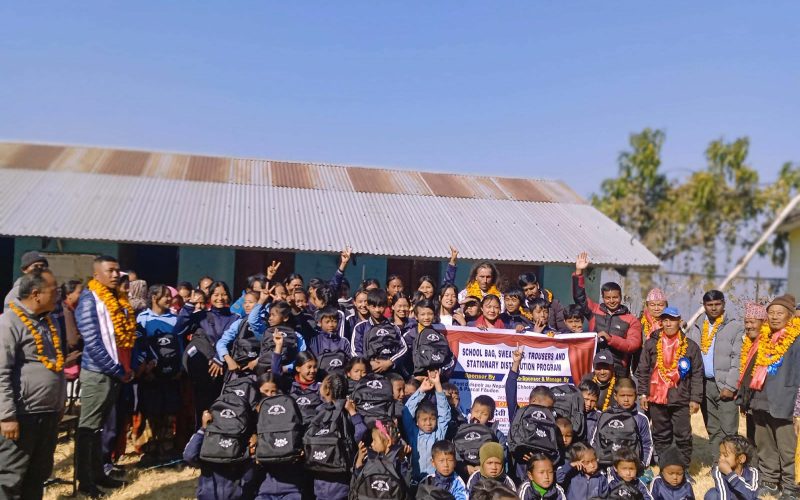 काभ्रे। जाडोको चिसो बिहान रोशी गाउँपालिका-४ माटे स्थित नागदेवी माध्यमिक विद्यालयमा अध्ययनरत विद्यार्थीहरूका लागि न्यानोपन बोकेर शिक्षक क्षेत्र तामाङ विद्यालय परिसर पुग्नुभएको छ। उहाँले आर्थिक रूपमा कमजोर विद्यार्थीहरूलाई लक्षित गर्दै ट्र्याकसुट, स्वेटर, झोला लगायत शैक्षिक सामग्री वितरण गर्नुभयो।