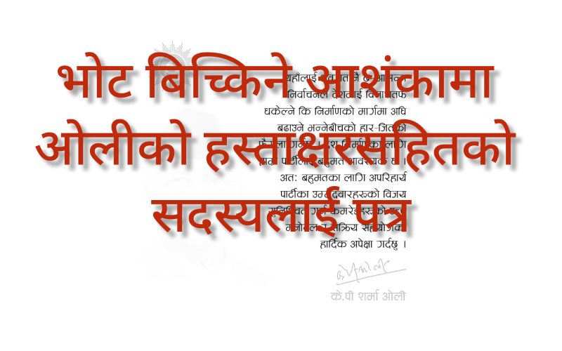 काठमाडौं /आसन्न निर्वाचनको संघारमा प्रधानमन्त्री तथा नेकपा (एमाले) अध्यक्ष के.पी. शर्मा ओलीले पार्टी उम्मेदवारको जित सुनिश्चित गर्न कार्यकर्तालाई लक्षित गर्दै हस्ताक्षरसहितको पत्र सार्वजनिक गरेका छन्। उक्त पत्रले चुनावलाई ‘देश विनाशतर्फ धकेल्ने कि निर्माणको मार्गमा अघि बढाउने’ निर्णायक घडीका रूपमा चित्रित गर्दै बहुमतको अपरिहार्यता जोड दिएको छ।