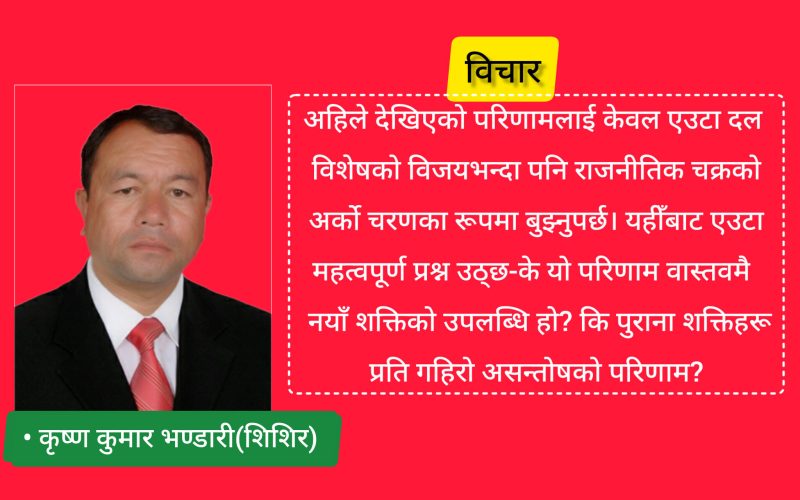 अहिले देखिएको परिणामलाई केवल एउटा दल विशेषको विजयभन्दा पनि राजनीतिक चक्रको अर्को चरणका रूपमा बुझ्नुपर्छ।
