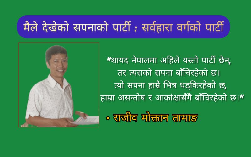 शायद नेपालमा अहिले यस्तो पार्टी छैन, तर त्यसको सपना बाँचिरहेको छ। त्यो सपना हाम्रै भित्र धड्किरहेको छ, हाम्रा असन्तोष र आकांक्षासँगै बाँचिरहेको छ। जब सर्वहारा वर्गले आफ्ना साना–साना असन्तोषहरूलाई साझा सपनामा रूपान्तरण गरे, त्यहीँबाट नयाँ पार्टी जन्मिन्छ।