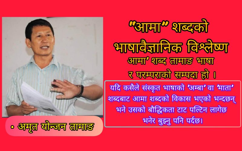 यसर्थ नेपाली समाजमा प्रयोग गरिने ’आमा’ शब्द भोट–बर्मेली परिवार अनि तामाङ भाषा र परम्पराको सम्पदा हो भनेर ठोकुवा गर्न सकिन्छ। यदि कसैले संस्कृत भाषाको ’अम्बा’ वा ’माता’ शब्दबाट आमा शब्दको विकास भएको भन्दछन् भने उसको बौद्धिकता टाट पल्टिन लागेछ भनेर बुझ्नु पनि पर्दछ।